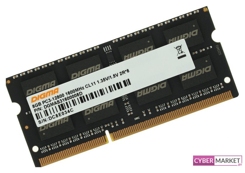1 модуль, частота 1600 МГц, CL 11T, тайминги 11-11-11-28, напряжение 1.35 В