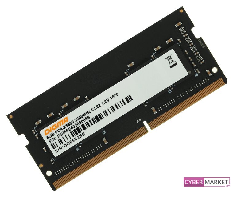 8 ГБ, 1 модуль DDR4 SO-DIMM, частота 3200 МГц, напряжение 1.2 В