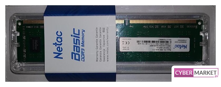 4 ГБ, 1 модуль DDR3 DIMM, частота 1600 МГц, CL 11T, напряжение 1.35 В