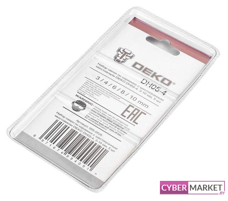 | Комплектация | 5 сверл диаметром 3, 4, 6, 8, 10 мм. |