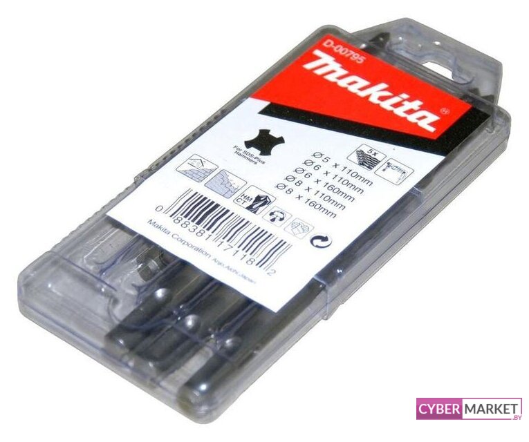 | Комплектация | Набор буров по бетону SDS-Plus 5, 6, 8×110 мм; 6, 8×160 мм. |