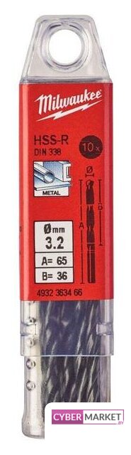 | Комплектация | Сверла по металлу HSS-R D 3.2x36x65 |