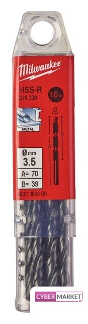 | Комплектация | Сверла по металлу HSS-R D 3,5x39x70 мм |