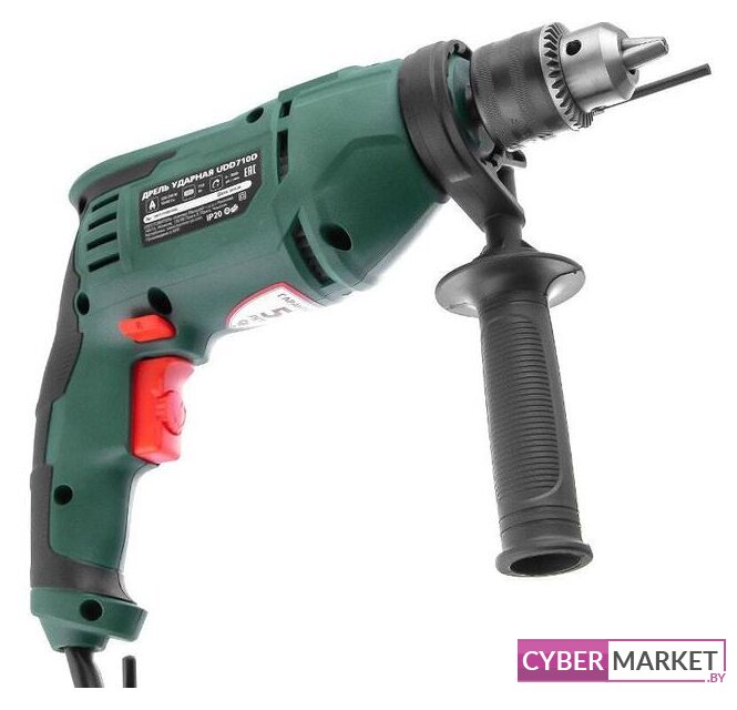 | Комплектация | - Дрель;- Дополнительная рукоятка;- Ограничитель глубины сверления;- Ключ патрона;- Руководство по эксплуатации;- Гарантийный талон;- Упаковка. |