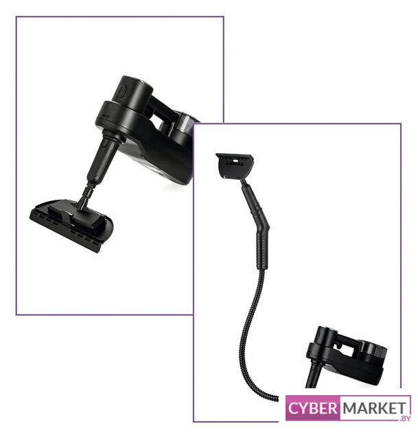 | Комплектация | Скребок, латунная и нейлоновые щётки очищают сложные загрязнения за счёт механического воздействия. Для очистки окон, зеркал и кафельной плитки используется скребок для стекла с резиновой вставкой. Струйная и угловая насадки помогут очистить щели и углы. |