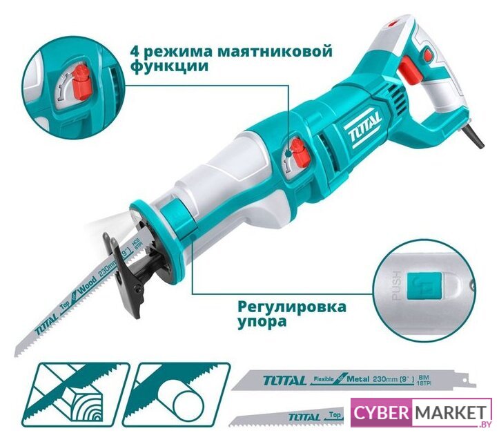 | Комплектация | - Пила сабельная - 1 шт- Полотно по металлу 230 мм - 1 шт- Полотно по дереву 230 мм - 1 шт- Инструкция- Коробка |