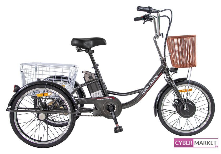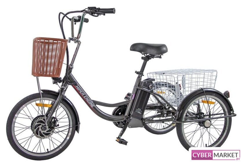 городской, двухподвес, материал рамы: сталь Hi-ten, колеса 24", вилка амортизационная, трансмиссия 1 скор., тормоза дисковый механический + барабанный, вес 38 кг