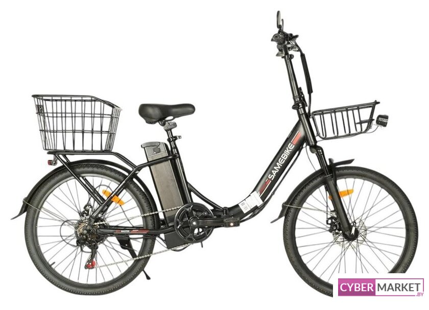 городской, двухподвес, материал рамы: сталь Hi-ten, колеса 24", вилка амортизационная, трансмиссия 1 скор., тормоза дисковый механический + барабанный, вес 38 кг