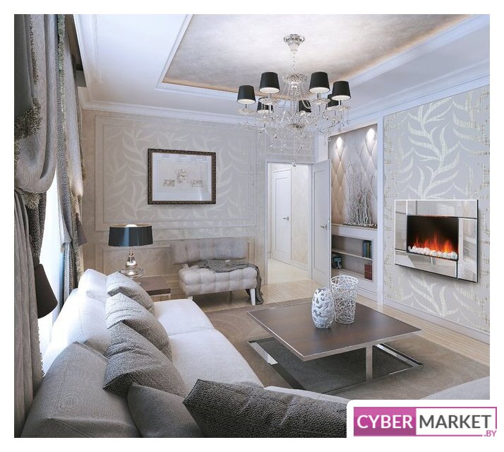 электрокамин, настенный, современный стиль, 1800 Вт, имитация 2D (LED), пульт