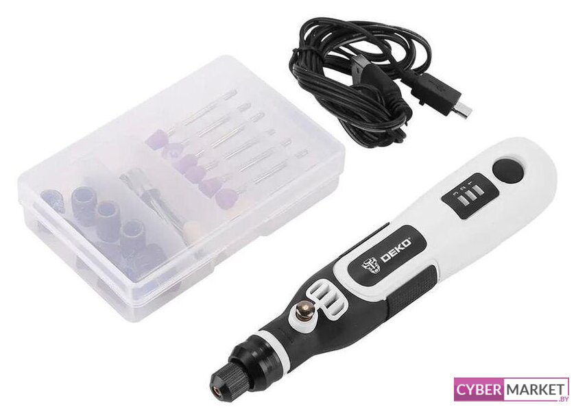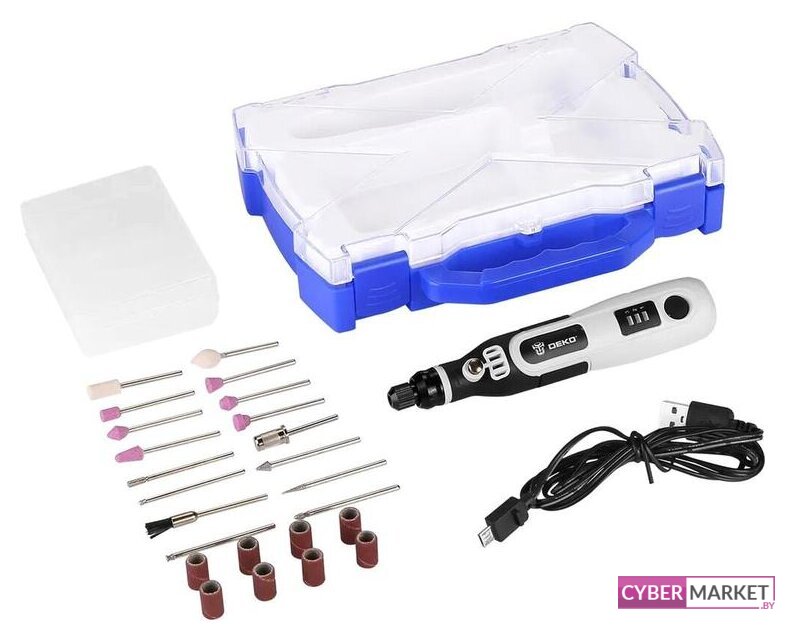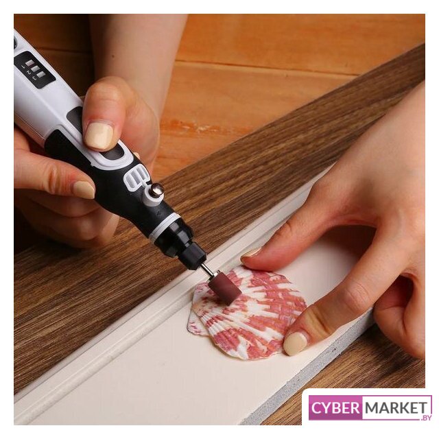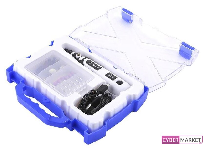 | Комплектация | Гравер аккумуляторный - 1 шт.Шлифовальный круг с хвостовиком (2.3мм) - 6 штАлмазные биты (2.3мм) - 6 штШерстяной полировальный круг (2.3мм) - 2 штХвостовик (2.3мм) - 1 штНейлоновая щетка (2.3мм) - 1 штШлифовальный цилиндр (2.3мм) - 8 штUSB-кабель - 1 шт.ИнструкцияКейс |