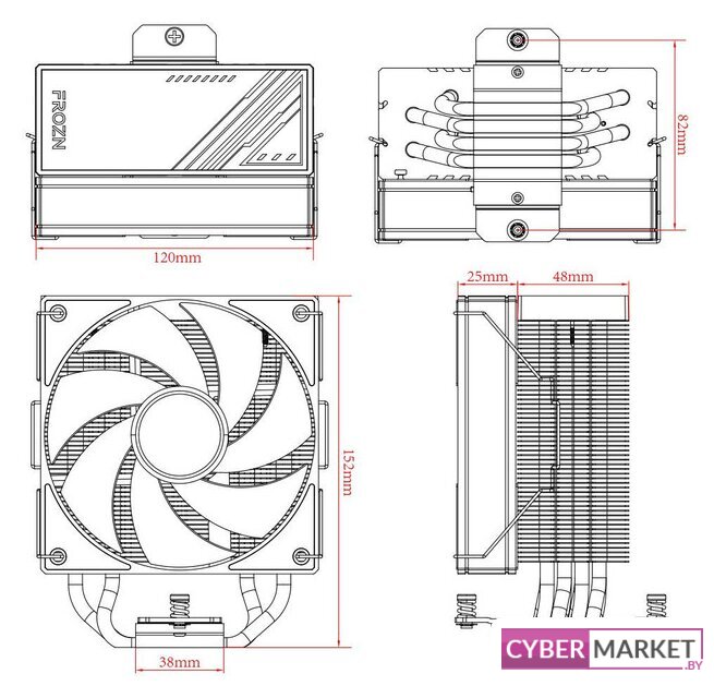 кулер для процессора, воздушное охлаждение, алюминий, рассеивание до 125 Вт, шум 26.7 дБ, вентилятор 120 мм, скорость 1000-2000 об/мин, PWM