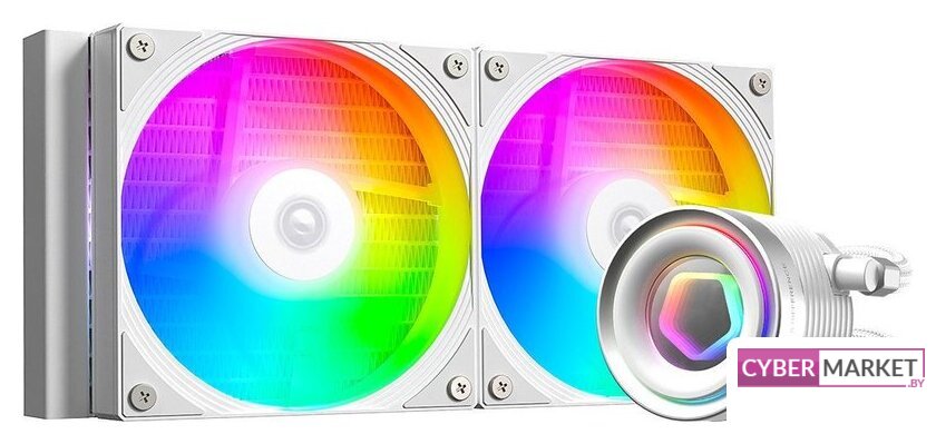 типоразмер 240, рассеивание до 300 Вт, макс. шум 29.9 дБ, вентилятор 120 мм, 2000 об/мин, PWM, ARGB подсветка, розовый