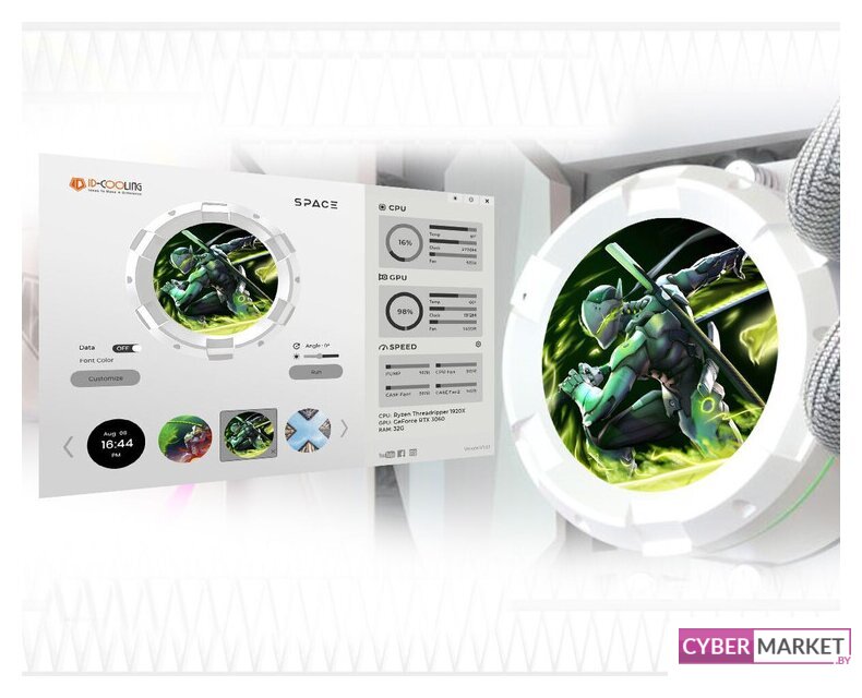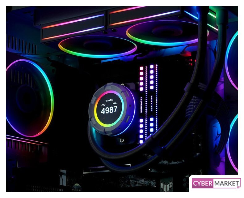 типоразмер 240, рассеивание до 300 Вт, высота 27 мм, макс. шум 35.2 дБ, вентилятор 120 мм, 1800 об/мин, PWM, подшипник гидродинамический (FDB), ARGB подсветка