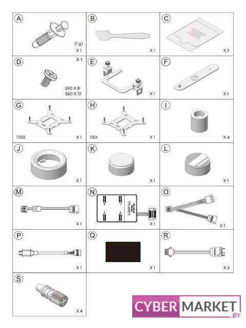 типоразмер 360, рассеивание до 300 Вт, высота 27 мм, макс. шум 38.71 дБ, вентилятор 120 мм, 2400 об/мин, PWM, подшипник гидродинамический (FDB), ARGB подсветка