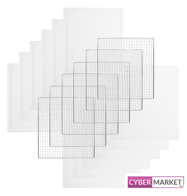 | Комплектация | - 6 поддонов для сушки;- 6 поддонов для жидкости;- 6 сеток для трав, ягод и т.д;- 1 корзина. |