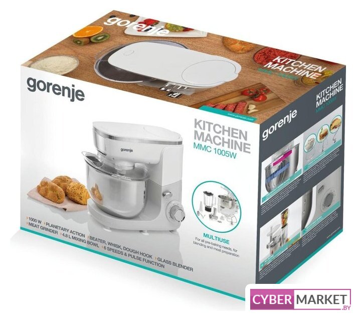 1000 Вт, планетарное смешивание, объем чаши: 4.8 л, мясорубка, блендер
