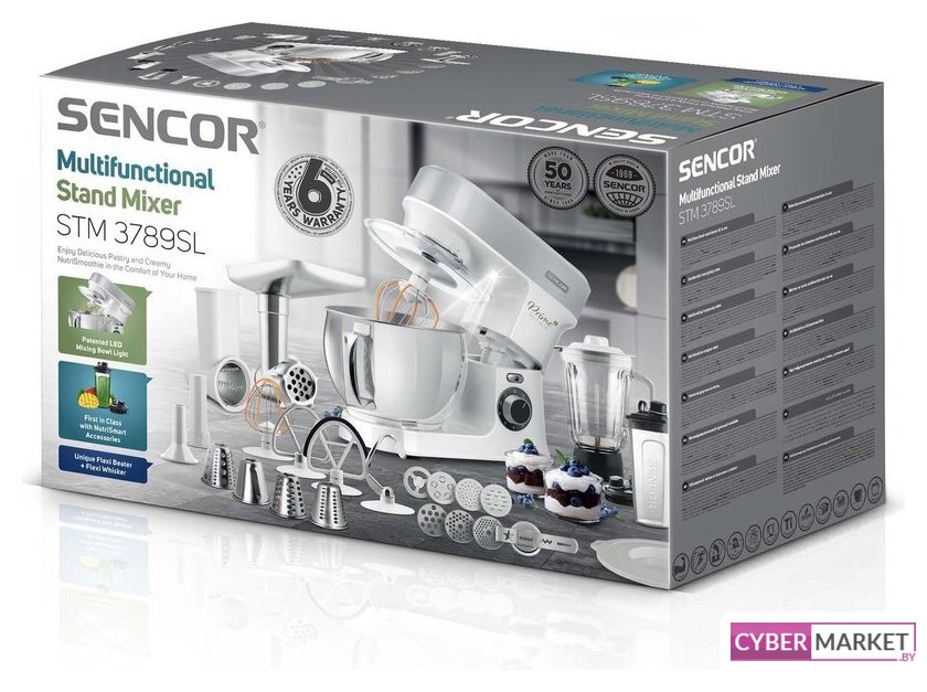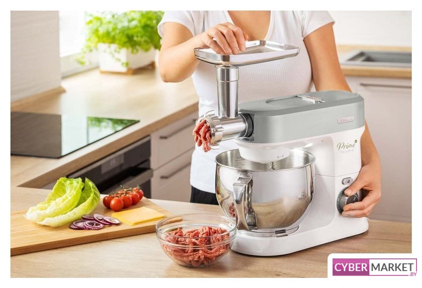 1200 Вт, планетарное смешивание, объем чаши: 6 л, мясорубка