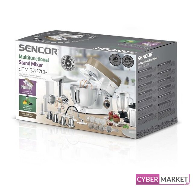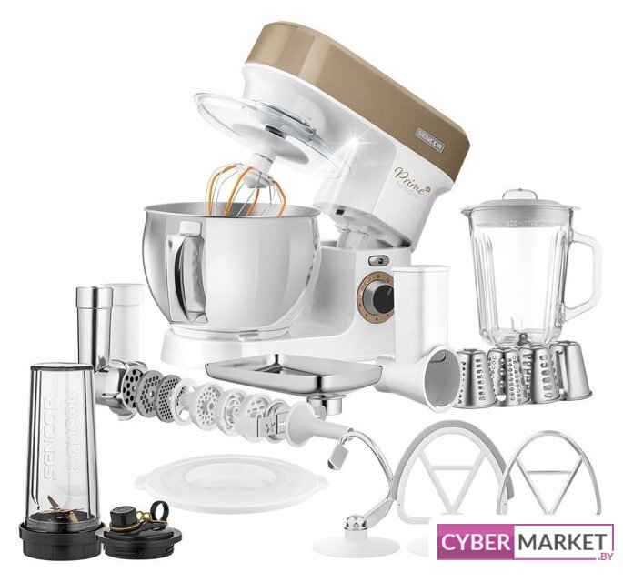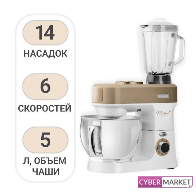 1200 Вт, планетарное смешивание, объем чаши: 6 л, мясорубка