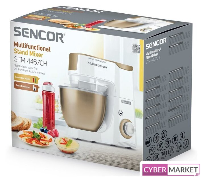 1000 Вт, планетарное смешивание, объем чаши: 4.8 л, мясорубка, блендер