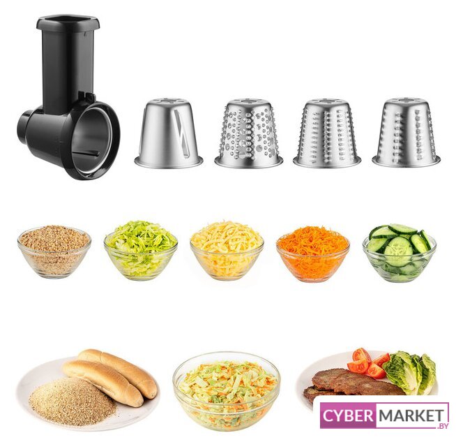 | Функции | мясорубка, блендер, взбивание, смешивание, замешивание дрожжевого теста, измельчитель, рубка, терка, шинковка, ломтерезка |