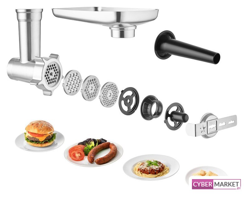1200 Вт, планетарное смешивание, объем чаши: 6 л, мясорубка