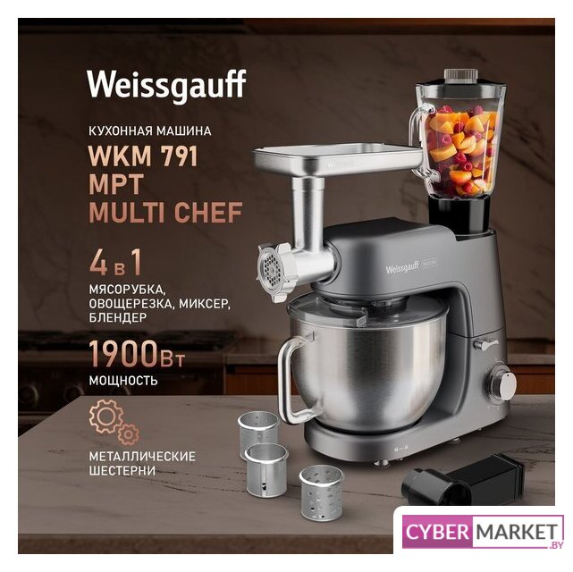 1900 Вт, планетарное смешивание, объем чаши: 7 л, терки, мясорубка, блендер
