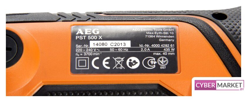 500 Вт, рукоятка-скоба, глубина пропила: 70 мм (дерево), 6 мм (сталь), 1450–3200 ходов/мин, ход пилки: 20 мм, 2.1 кг