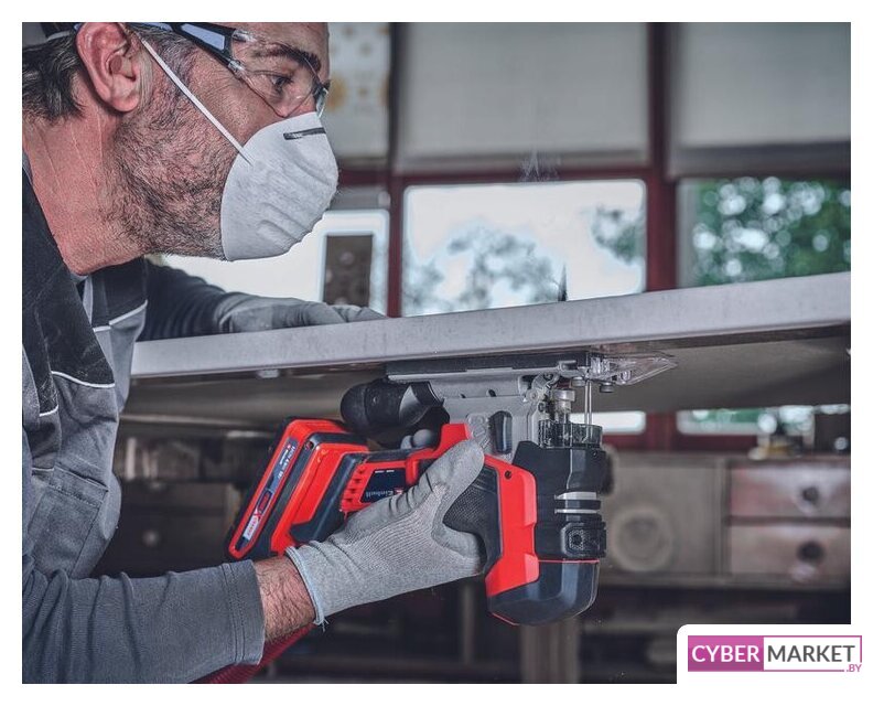 рукоятка-скоба, питание: аккумулятор (20 В), без аккумулятора в комплекте, глубина пропила: 50 мм (дерево), 4 мм (сталь), 3000 ходов/мин, ход пилки: 20 мм, 1.5 кг