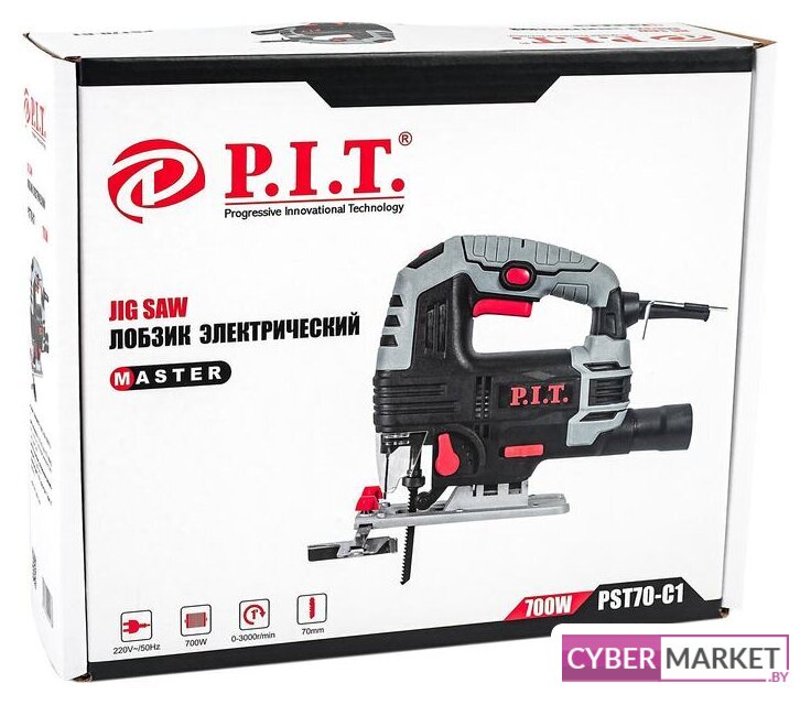 рукоятка-скоба, питание: сеть, 700 Вт, глубина пропила: 70 мм (дерево), 8 мм (сталь), 0–3000 ходов/мин, 3 кг