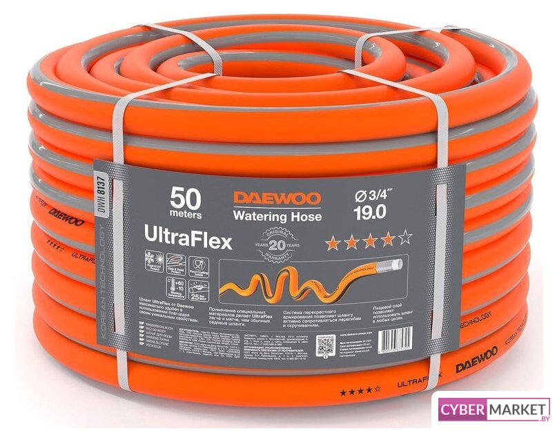 стандартный, ПВХ, армированный, гладкая поверхность, диаметр 19 мм, длина 50 м, желтый/серый