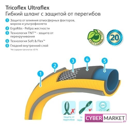 стандартный, ПВХ, армированный, гладкая поверхность, диаметр 19 мм, длина 25 м, оранжевый/серый/черный