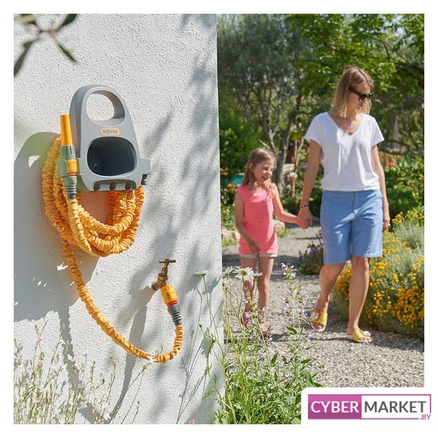 катушка со шлангом с распылителем, ПВХ, армированный, гладкая поверхность, диаметр 13 мм, длина 20 м, оранжевый/серый