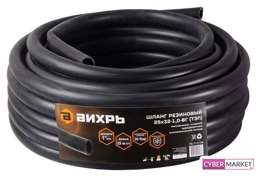 стандартный, ПВХ, армированный, гладкая поверхность, диаметр 15 мм, длина 25 м, оранжевый/серый/черный