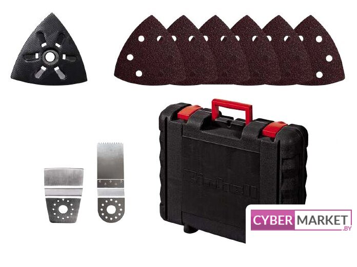| Комплект поставки | ШлифмашинаСкребокТреугольная шлифовальная пластинкаПильное полотно из высоколегированной быстрорежущей сталиМеталлическое пильное полотно6 шлифовальных листов (зернистость 60 и 120)Устройство пылеудаленияПатрубок для подключения пылесосаШестигранный ключРуководство по эксплуатацииПластиковый кейс |
