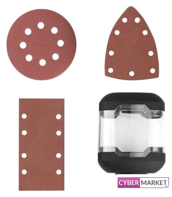 | Комплект поставки | - шлифовальная машина, - три сменных основания (круглое, прямоугольное и треугольное),- три шлифовальные бумаги, - контейнер для сбора пыли - руководство по эксплуатации. |