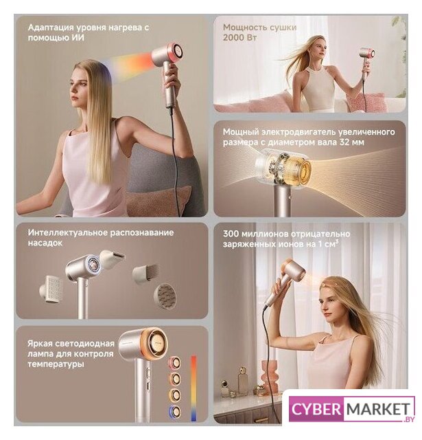 1400 Вт, ионизация, термодатчик, независимая регулировка температуры, шнур 2.8 м, золотистый