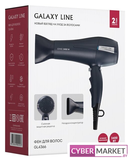 2000 Вт, ионизация, независимая регулировка температуры, шнур 3 м, черный