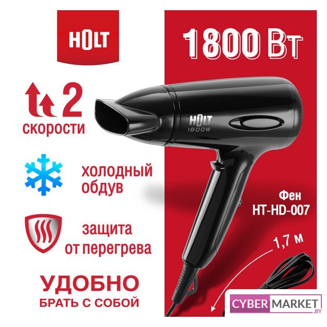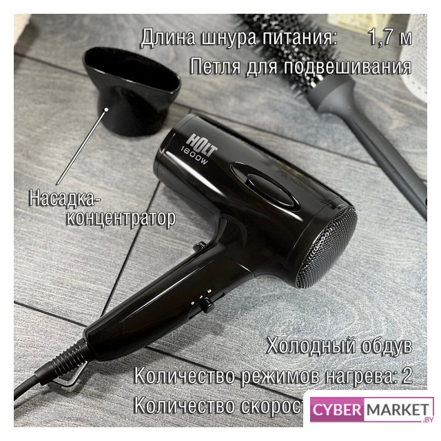 1800 Вт, ионизация, независимая регулировка температуры, шнур 1.6 м, черный