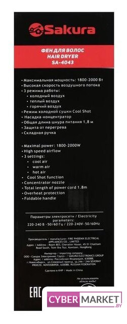 Изготовитель: Страна производства: Китай Производитель: ООО «Сакура Электроникс Групп», Северный проезд, стр. 7, г. Новосибирск, Российская Федерация