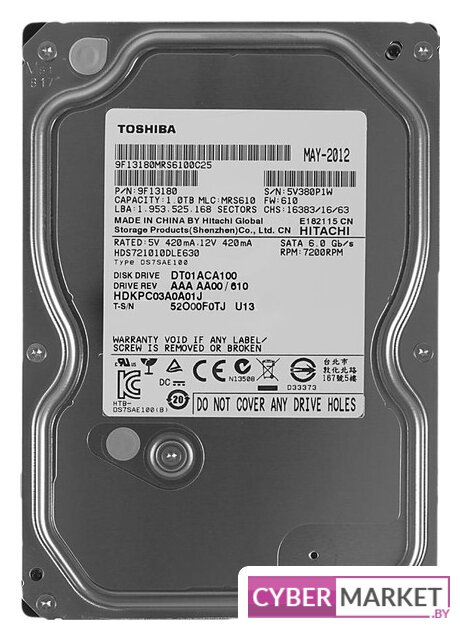 3.5", SATA 3.0 (6Gbps), 5400 об/мин, буфер 128 МБ, технология SMR