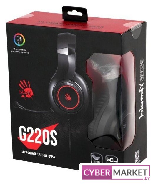 наушники с микрофоном, геймерские, оформление закрытое, излучатель 50 мм, 20-20000 Гц, 32 Ом, кабель 2.2 м