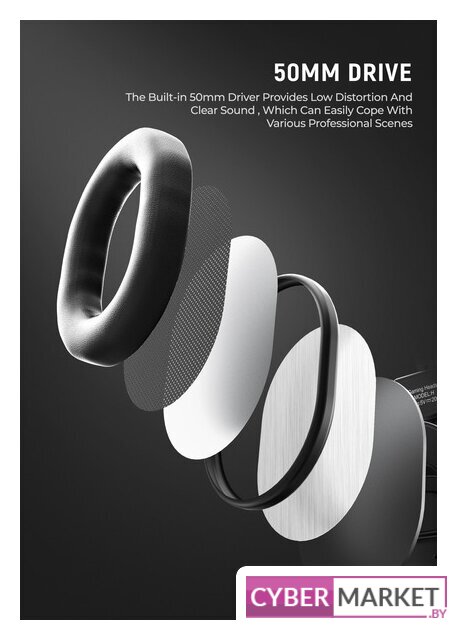 беспроводные наушники с микрофоном, мониторные (охватывающие), портативные, Bluetooth 5.3, 20-20000 Гц, поворотные чашки/складное оголовье, время работы 70 ч, кабель 1.2 м