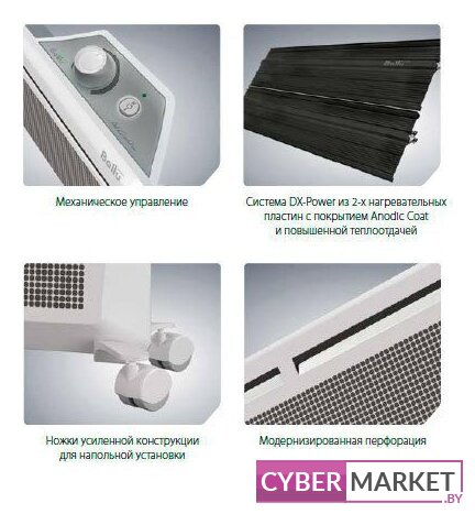 конвектор, 2000 Вт, термостат, возможность крепления на стену, управление электронное, площадь обогрева 25 м2