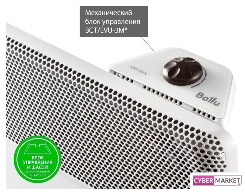 отопительный модуль конвектора, 1500 Вт, термостат, настенный монтаж, управление отдельным приобретаемым блоком управления, площадь обогрева 20 м2, влагозащищенный корпус