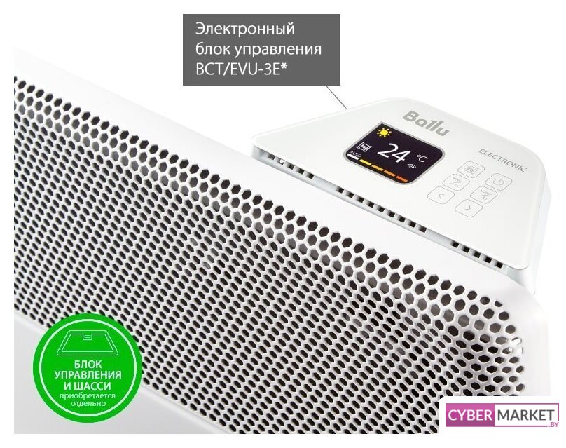 отопительный модуль конвектора, 500 Вт, термостат, настенный монтаж, управление электронное, площадь обогрева 8 м2, влагозащищенный корпус