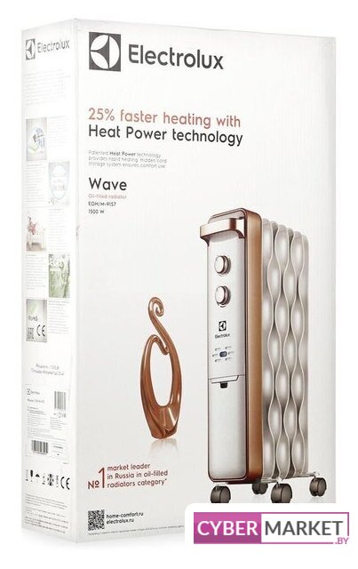 масляный радиатор, 1500 Вт, термостат, управление механическое, площадь обогрева 20 м2