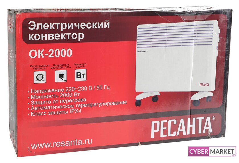 конвектор, 1000 Вт, термостат, возможность крепления на стену, управление механическое, площадь обогрева 15 м2, влагозащищенный корпус