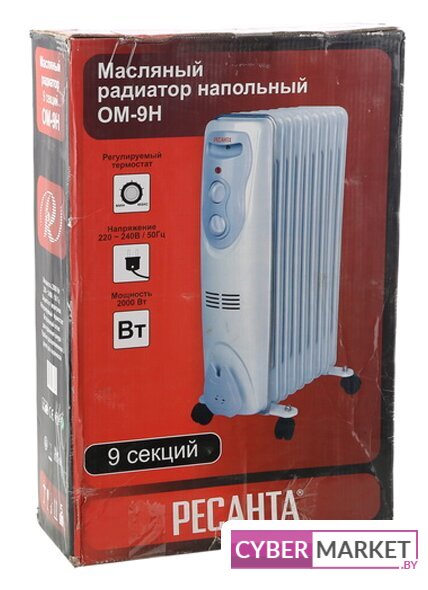 масляный радиатор, 2000 Вт, термостат, управление механическое