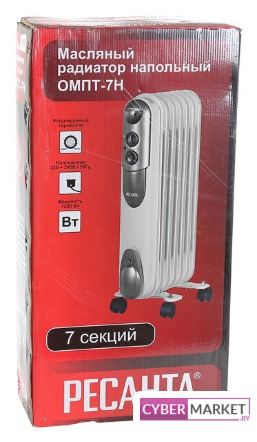 масляный радиатор, 1500 Вт, термостат, управление механическое