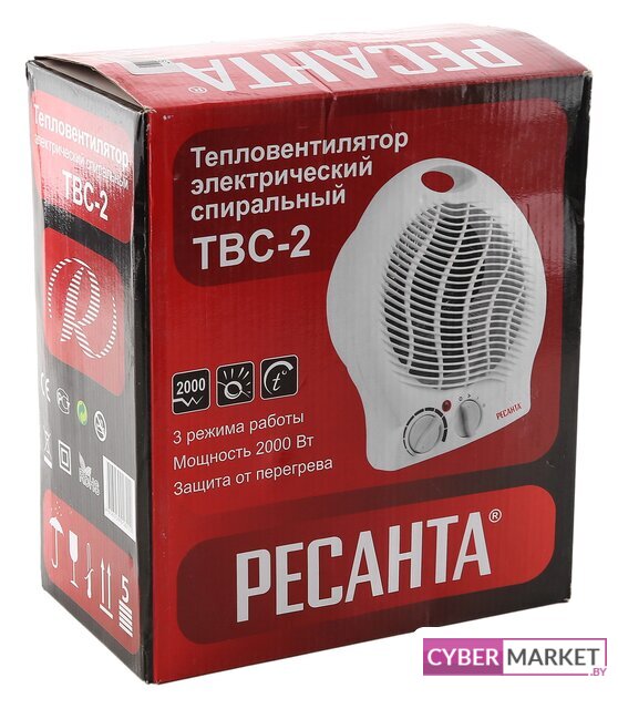 тепловентилятор, спиральный, 2000 Вт, термостат, управление механическое, площадь обогрева 25 м2